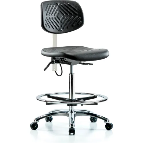 Blue Ridge Ergonomics Polyurethane ESD High Bench Chair with Foot Ring, ESD Casters, Black