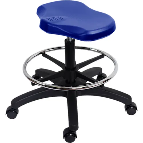 Blue Ridge Ergonomics Polyurethane Ray Stool, Medium Bench Height, Chrome Foot Ring & Casters, Blue