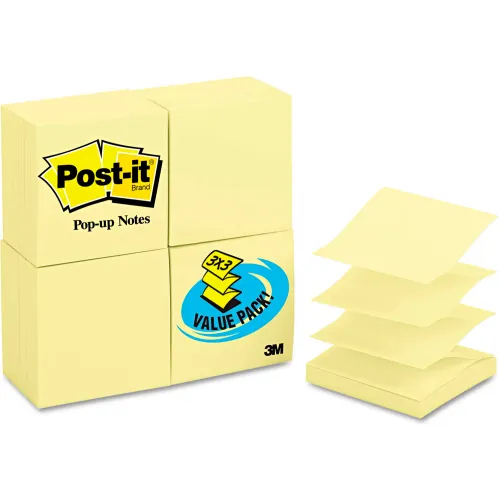 Post-it® Pop-up Notes Refill Value Pack, 3"x3", Canary Yellow, 100 Sheets/Pad, 24 Pads/PK