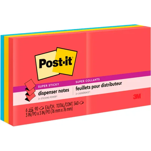 Post-it® Dispenser Sticky Pop-up Note Refill, 3"x3", Primary Colors, 90 Sheets/Pad, 6 Pads/PK