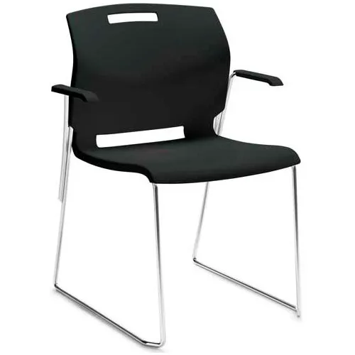 Global™ Stacking Chair with Arms - Plastic - Asphalt Night Black - Popcorn Series