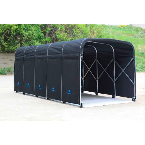 Versare Portable Equipment Shelter with EBF 3 Light Gray Flooring, 16'4"L x 8'W x 7'1"H, Black
