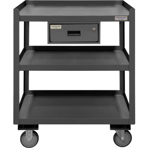 Durham Mfg. Mobile Shop Desk, Drawer, 3 Shelves, 30"W x 24"D x 36"H, Gray