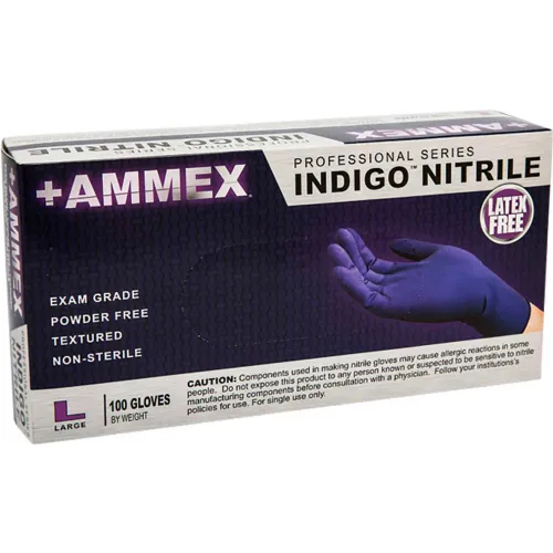 Ammex® AINPF Textured Medical/Exam Nitrile Gloves, Powder-Free, Indigo, Large, 100/Box