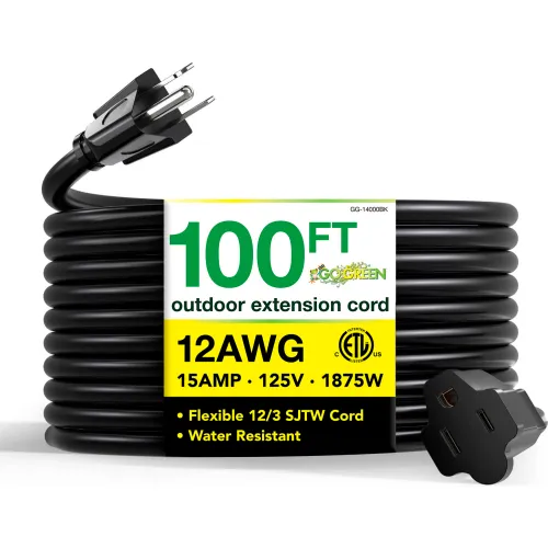 GoGreen Power SJTW Heavy Duty Extension Cord, 1 Outlet, 12/3 Gauge, 100'L, Black