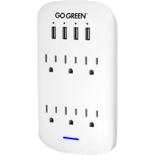 GoGreen Power Wall Tap with Surge Protection & 4 USB Ports, 6 Outlet, 15A, White