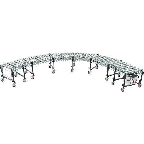 Global Industrial 24"W Steel Powered Flexible Roller Conveyor, 9' to 19'L