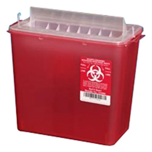 Plasti-Products 141020 5-Quart Sharps Container, Horizontal Entry, Red, Case of 10