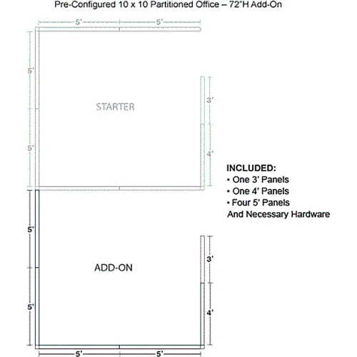 Interion® Pre-Configured Office Cubicle, 10'W x 10'D x 72"H, Add-On Kit, Blue