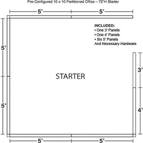 Interion® Pre-Configured Office Cubicle, 10'W x 10'D x 72"H, Starter Kit, Gray