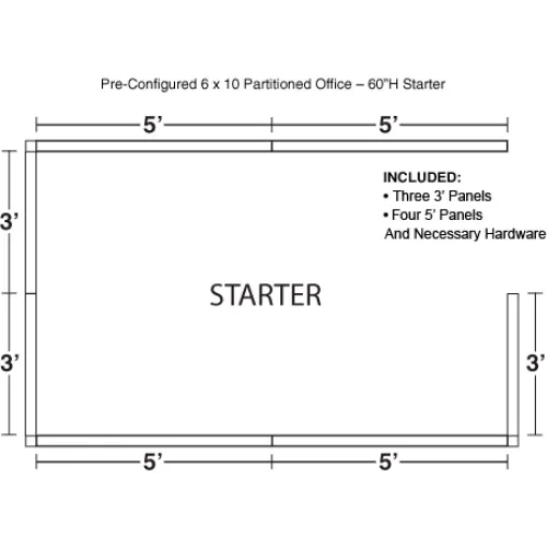 Interion® Pre-Configured Office Cubicle, 6'W x 10'D x 60"H, Starter Kit, Blue