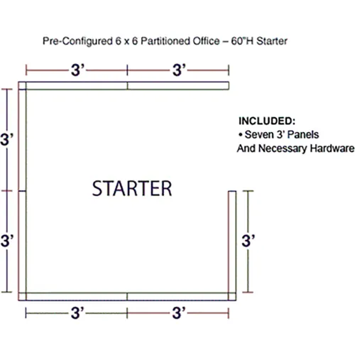 Interion® Pre-Configured Office Cubicle, 6'W x 6'D x 60"H, Starter Kit, Gray