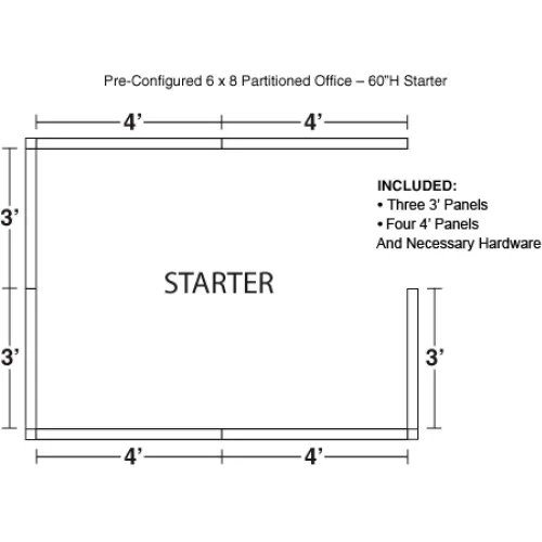 Interion® Pre-Configured Office Cubicle, 6'W x 8'D x 60"H, Starter Kit, Gray