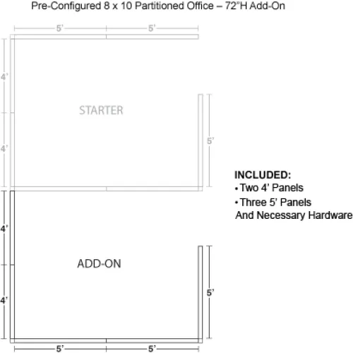 Interion® Pre-Configured Office Cubicle, 8'W x 10'D x 72"H, Add-On Kit, Blue