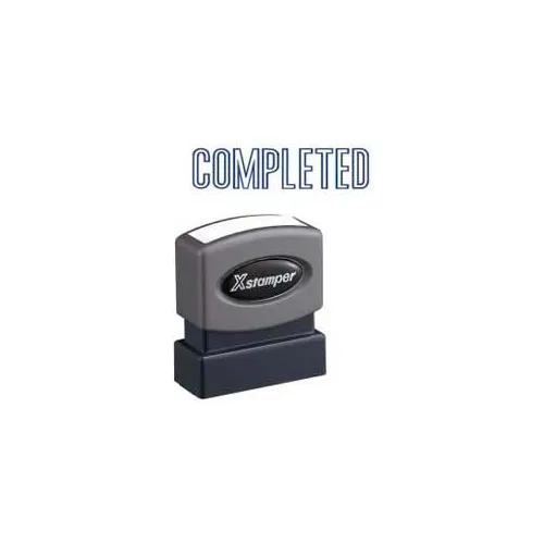Xstamper® Pre-Inked Message Stamp, COMPLETED, 1-5/8" x 1/2", Blue