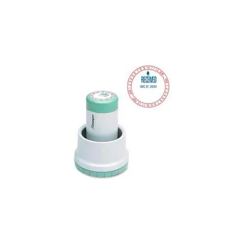 Xstamper® XpeDater Pre-Inked Rotary Date & Time Stamp, 1-3/4" Diameter, Blue/Red