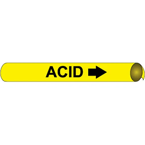 NMC Precoiled & Strap-On Pipe Marker, Acid, Fits Over 10" Pipe Dia.