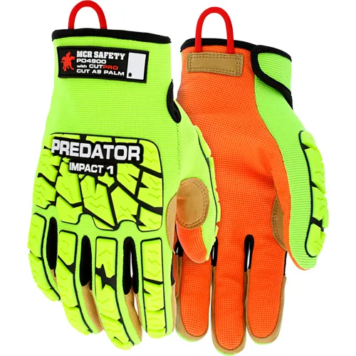MCR Safety Predator Gloves, Impact 1, Hi-Vis, CutPro, Maxgrid, Lime/Orange, L