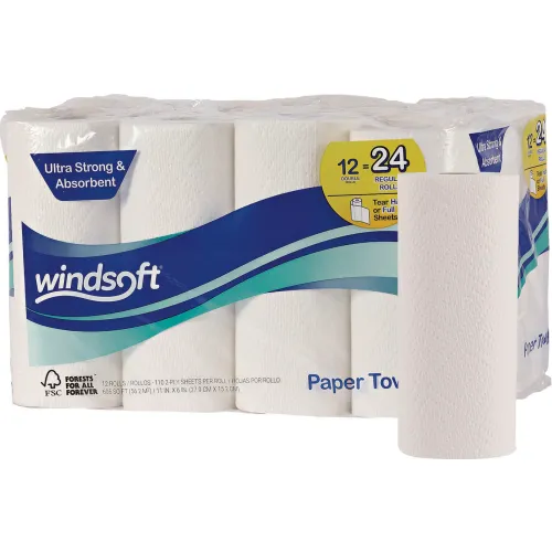 Windsoft® Premium Kitchen Roll Towels, 2-Ply, 6 x 11, White, 110/Roll, 12 Rolls/Carton