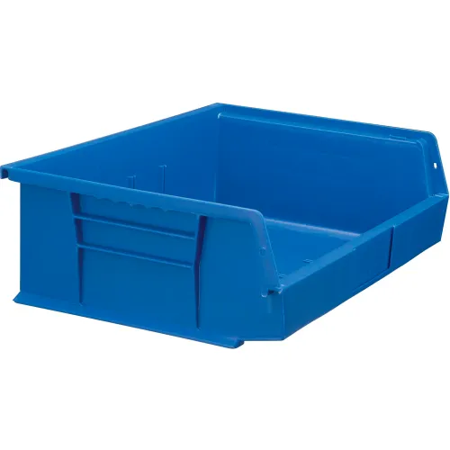 Global Industrial Plastic Hang & Stack Bin, 10-7/8"L x 16-1/2"W x 5"H, Blue - Pkg Qty 6