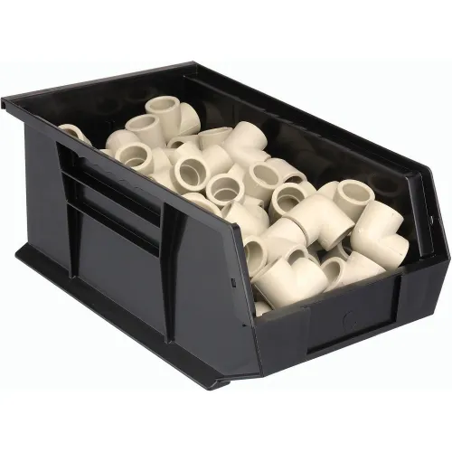 Quantum Storage Premium Plastic Hang & Stack Bin, 13-5/8"L x 8-1/2"W x 6"H, Black - Pkg Qty 12