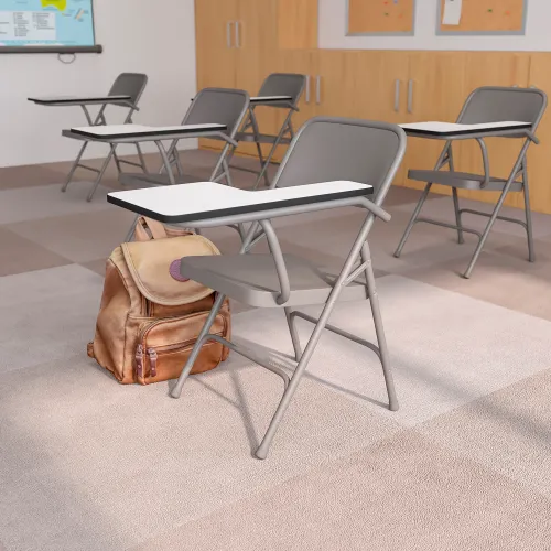 Flash Furniture Premium Steel Folding Chair - Left Handed Tablet Arm - Beige