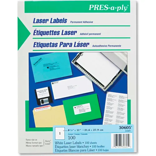 Avery® Pres-A-Ply Laser Address Labels, 8-1/2 x 11, White, 100/Box