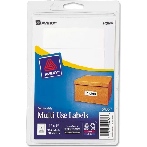 Avery® Print or Write Removable Multi-Use Labels, 1 x 3, White, 250/Pack
