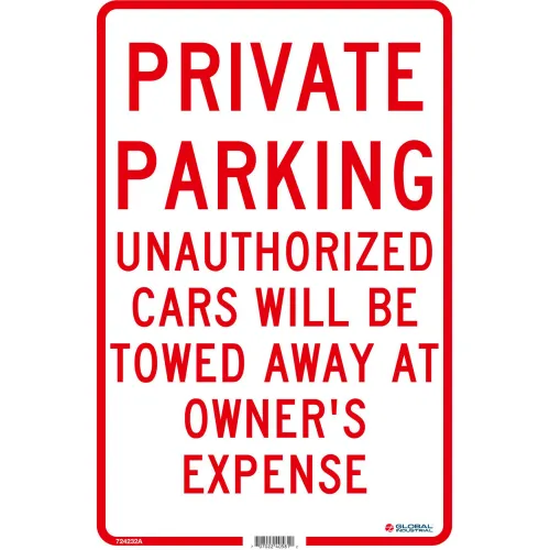 Global Industrial™ Private Parking Unauthorized Cars Will Be Towed.., 18x12, .040 Aluminum