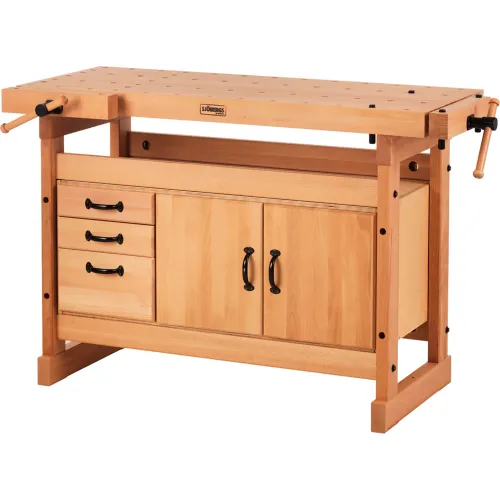 Sjobergs Nordic Pro 1400 Workbench w/ Cabinet & Accessory Kit, 56-1/16"W x 24-3/4"D, Brown