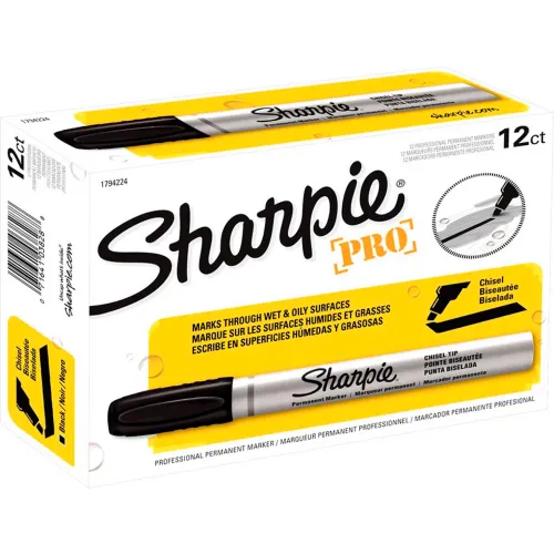Sharpie® Pro Permanent Marker, Chisel Tip, Industrial Strength, Black - Pkg Qty 12