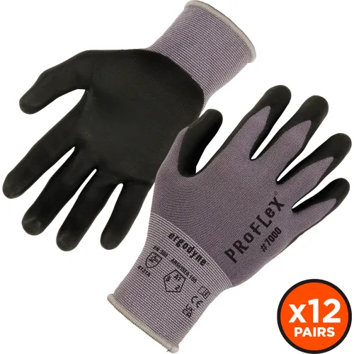 Ergodyne® ProFlex® 7000 Nitrile Coated Gloves w/ Microfoam Palm, Small, Gray, 12 Pairs