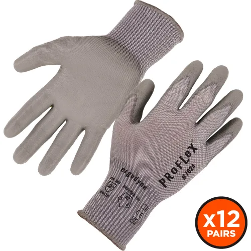 Ergodyne® Proflex 7024 Cut Resistant Gloves, Polyurethane Coated, ANSI A2, M, Gray, 12 Pairs