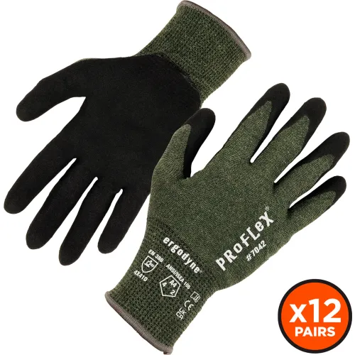 Ergodyne® Proflex 7042 Cut Resistant Gloves, Nitrile Coated, ANSI A4, L, Green, 12 Pairs