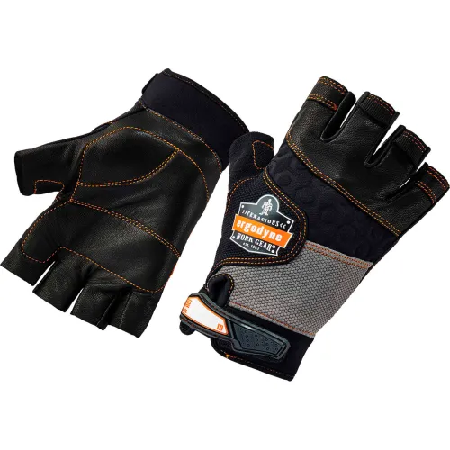 Ergodyne® ProFlex® 901 Half-Finger Leather Impact Gloves, Black/Gray, Small