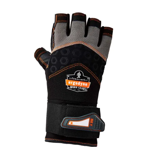 Ergodyne® ProFlex® 910 Half-Finger Impact Gloves, w/ Wrist Support, Black, S, 17712