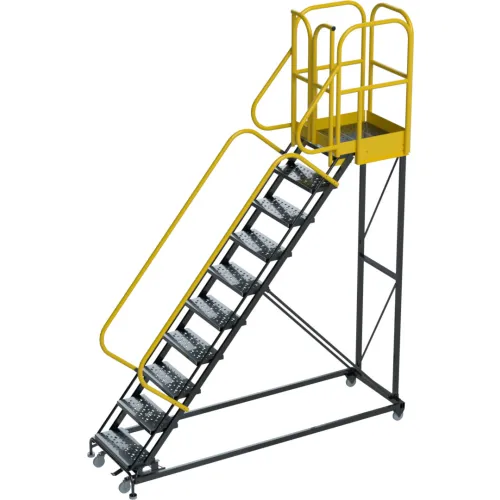 Ballymore ProLine 10 Step Extra Heavy Duty Rolling Safety Ladder, Perforated, 1000 lb. Capacity
