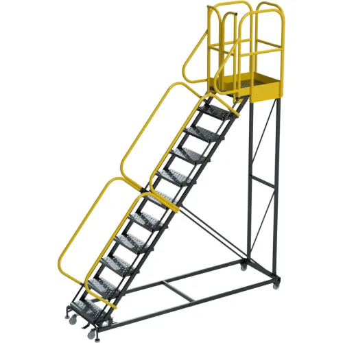 Ballymore ProLine 11 Step Extra Heavy Duty Rolling Safety Ladder, Perforated, 1000 lb. Capacity