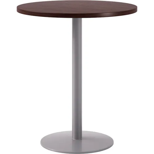 KFI Studios Proof 36" Round Pedestal Table, Bistro Height, Silver Base, Espresso Top
