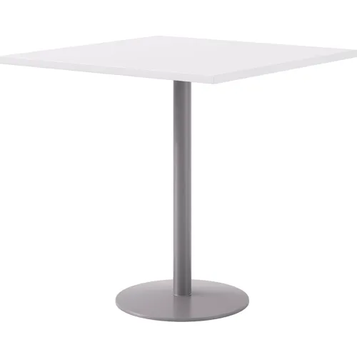 KFI Studios Proof 42" Square Pedestal Table, Bistro Height, Silver Base, Designer White Top