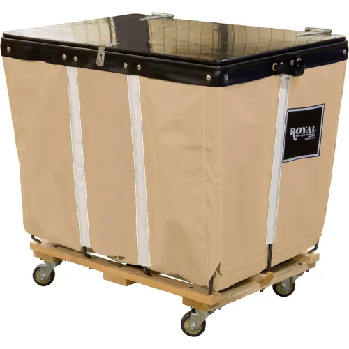 Royal Basket Trucks® PVC Hinged Top Basket Truck, 24 Bu, Tan Vinyl, Wood Base, All Swivel