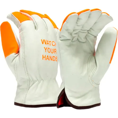 Pyramex® GL2002KF Insulated Value Cowhide Drivers Gloves, Keystone Thumb, L, White/Orange - Pkg Qty 12