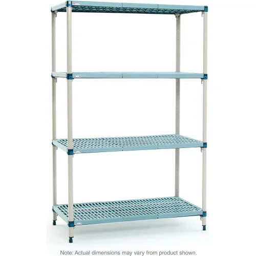MetroMax Q 4-Shelf Industrial Shelving Starter Unit, 41-13/16"W x 21-3/8"D x 74-3/16"H, Taupe/Blue