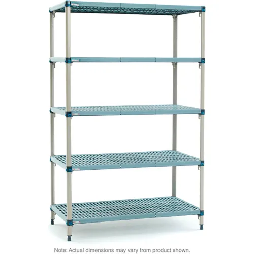 MetroMax Q 4-Shelf Industrial Shelving Starter Unit, 59-13/16"W x 24-3/8"D x 74-3/16"H, Taupe/Blue
