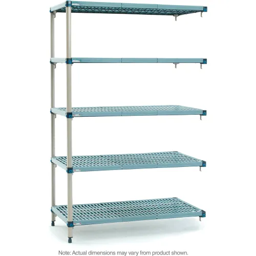 MetroMax Q 5-Shelf Industrial Shelving Add-On Unit, 29-13/16"W x 21-3/8"D x 74-3/16"H, Taupe/Blue