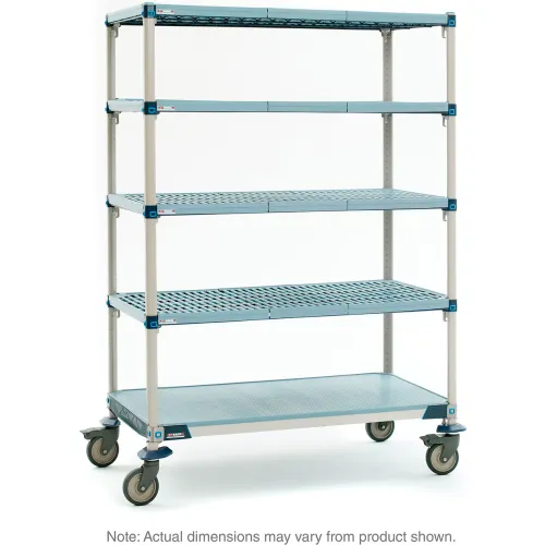 MetroMax Q Plastic Shelving Mobile Cart w/5 Shelves, 49-3/4"L x 20-5/16"W x 79-1/4"H, Taupe/Blue