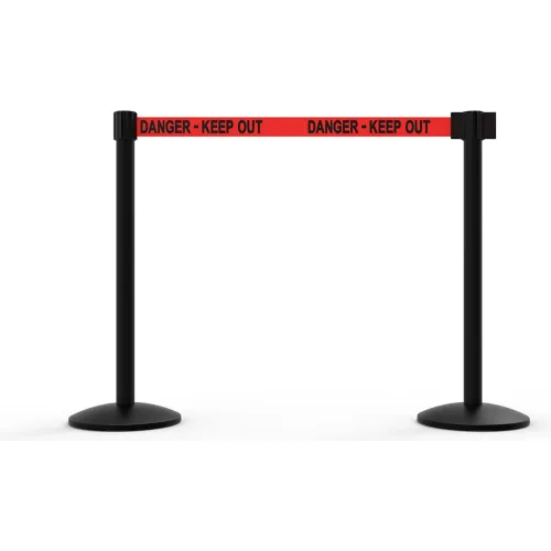 Banner Stakes QLine Retractable Belt Barrier X2, Black Post, Red "Danger - Keep Out"