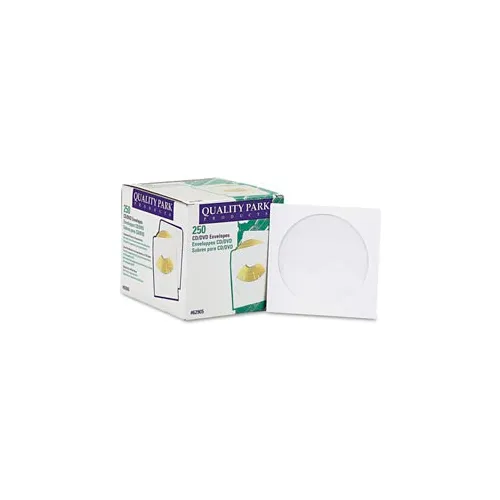 Quality ParkTM CD/DVD Sleeves, 5x5, 24lb, White, 250/Box