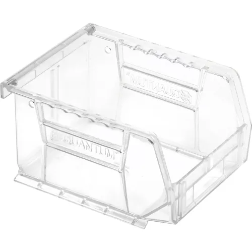 Quantum Storage Ultra Series Stack & Hang Bin, 4-1/8"L x 5-3/8"W x 3"H, Crystal Clear, Polypropylene - Pkg Qty 24