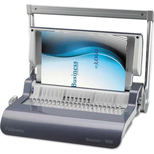Fellowes® Quasar 500 Manual Comb Binding System, 500 Sheets, 18.13"x15.38"x5.13", Metallic Gray